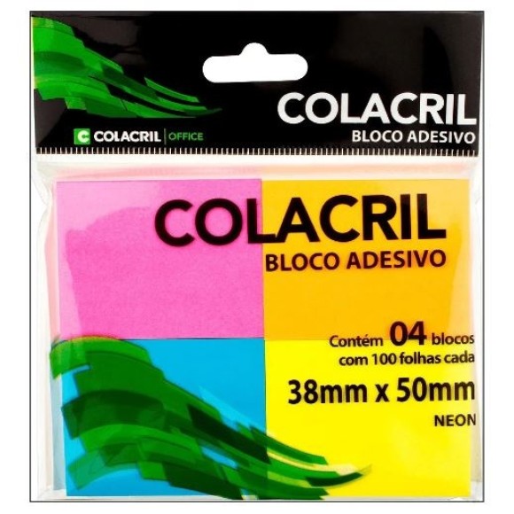 BLOCO ADESIVO 4 CORES NEON - COLACRIL