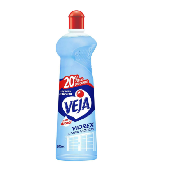 Limpa Vidros Vidrex Tradicional 500 Ml Squeeze - Veja. Ideal para superfícies como vidros, vitrines, para-brisas, espelhos