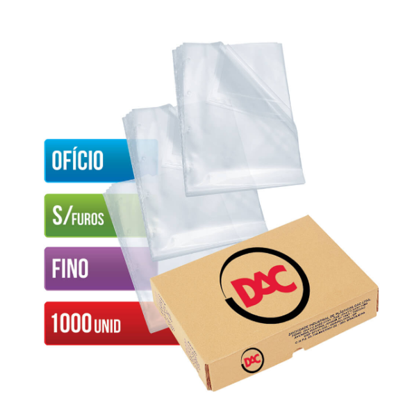 A DAC é líder no segmento de envelope plástico. Também conhecido como sacos plásticos, são ideais para utilização em fichários e pastas catálogo para guardar fotos, documentos, papeladas, e diversos outros materiais que não podem ser amassados ou rasgados. Produzido com qualidade e resistência, borda reforçada, um material transparente, brilhoso e que não amassa.