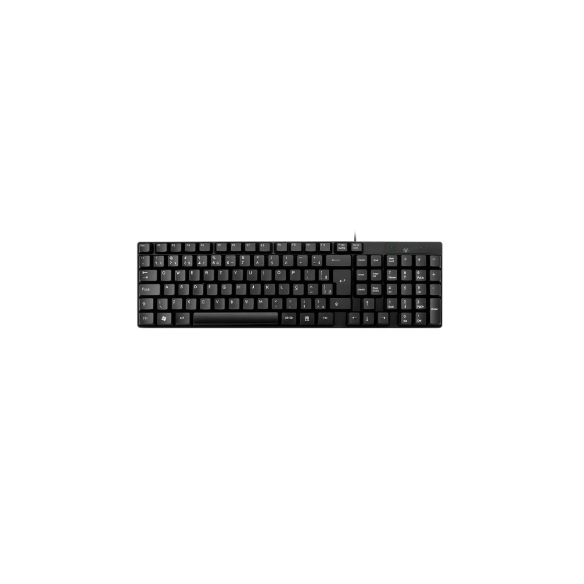 Teclado básico slim com conexão USB, cabo de 1,20m.